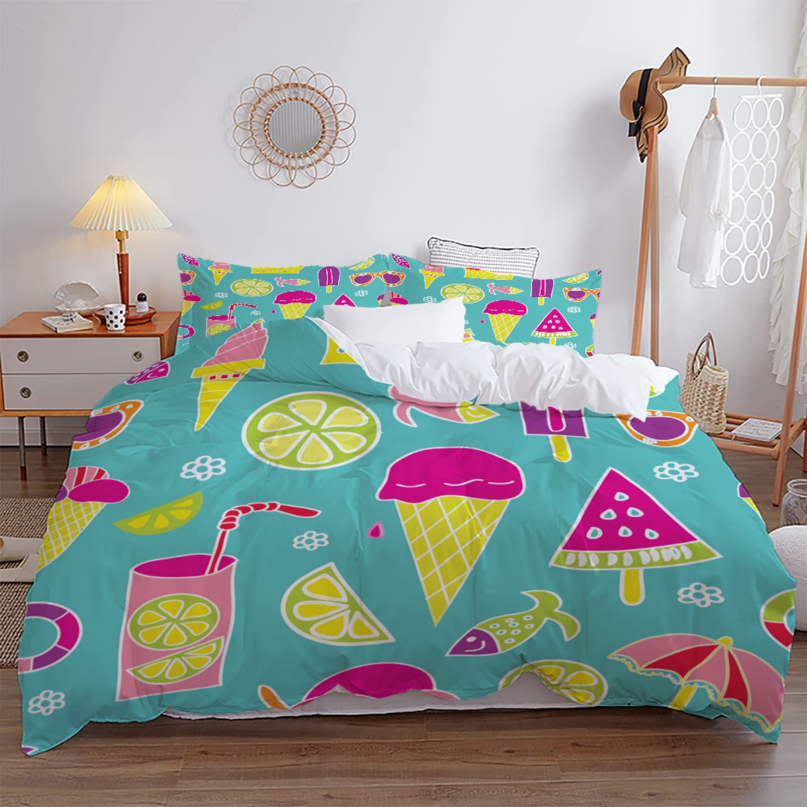 Десерт Еда Тема Пододеяльник Мороженое Узор Мультяшный Стиль Фон для Женщин Детей Девочек Подарок Спальня Украшения Королевский Размер 70x133cm 2pcs