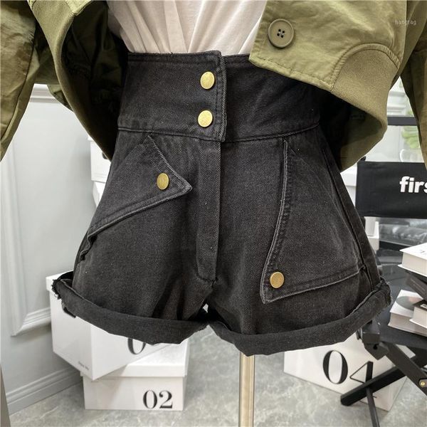 design high-waisted two-button jeans 2020 summer new personality wild and thin casual wide-leg shorts trend 10011, White;black