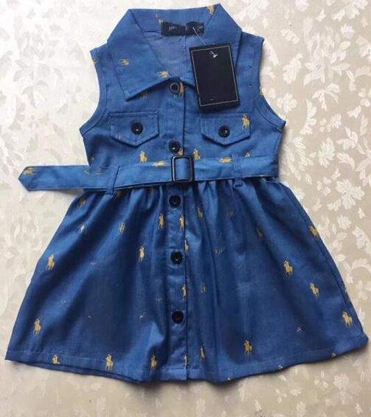 Дети девушки летние платья печати платье поло дизайнер девочка платье без рукаво
