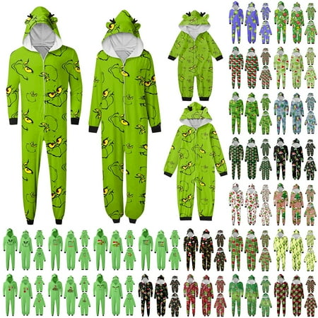 2024 Christmas Grinch Family Matching Loungewear Long-Sleeved Grinch Fashion Print Hooded Bodysuit Family Matching Pajamas for Baby Kid Men Women Family Dress Up