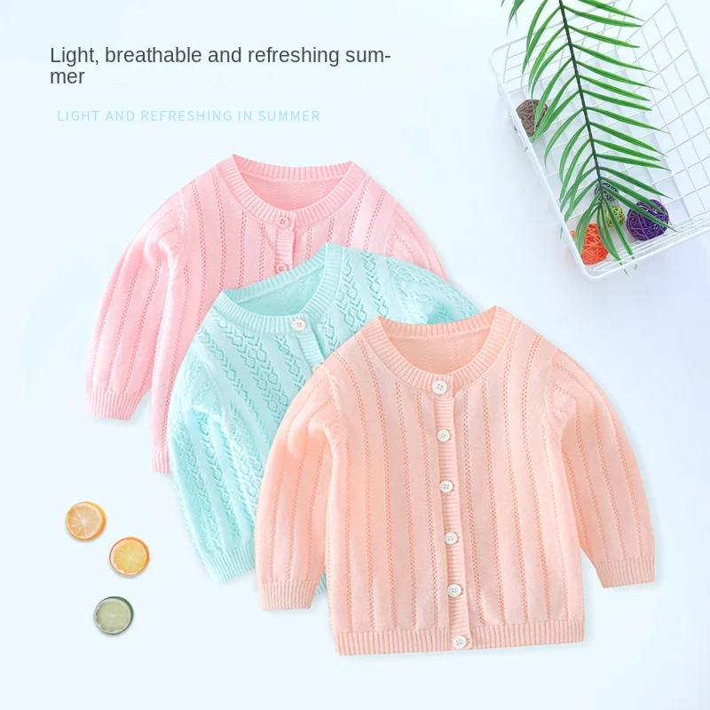 Детская воздухопроницаемая рубашка из чистого хлопка, сезон весна-лето, вязаный кардиган, пальто для девочек, тонкий вязаный детский кардиг...