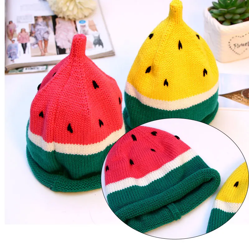 Детская вязаная шапка с фруктами, детская шапка с арбузом, Осень-зима, милая теплая шапка ручной вязки, головной убор, детская шапка