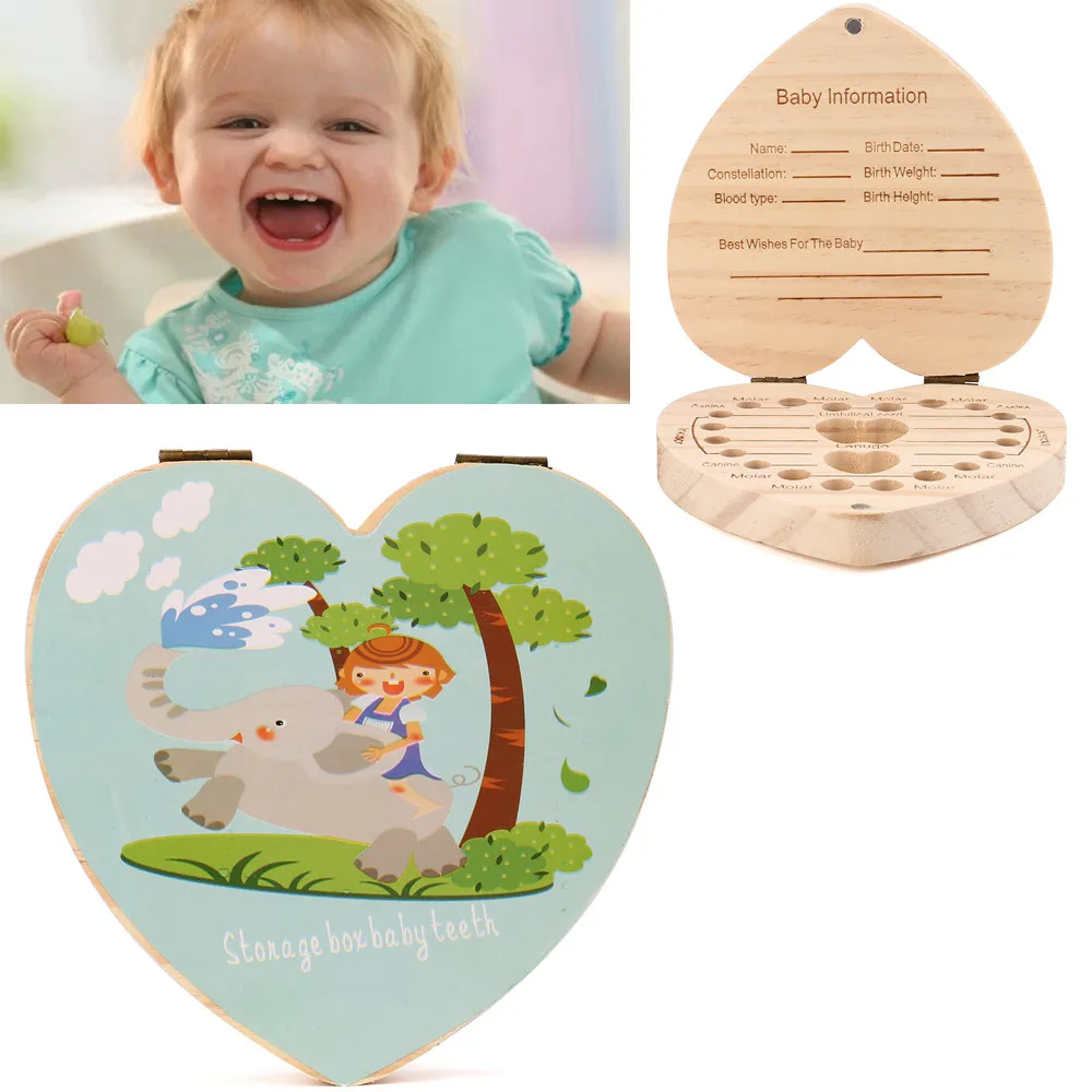Детская деревянная коробка для хранения зубов, с рисунком совы, слона