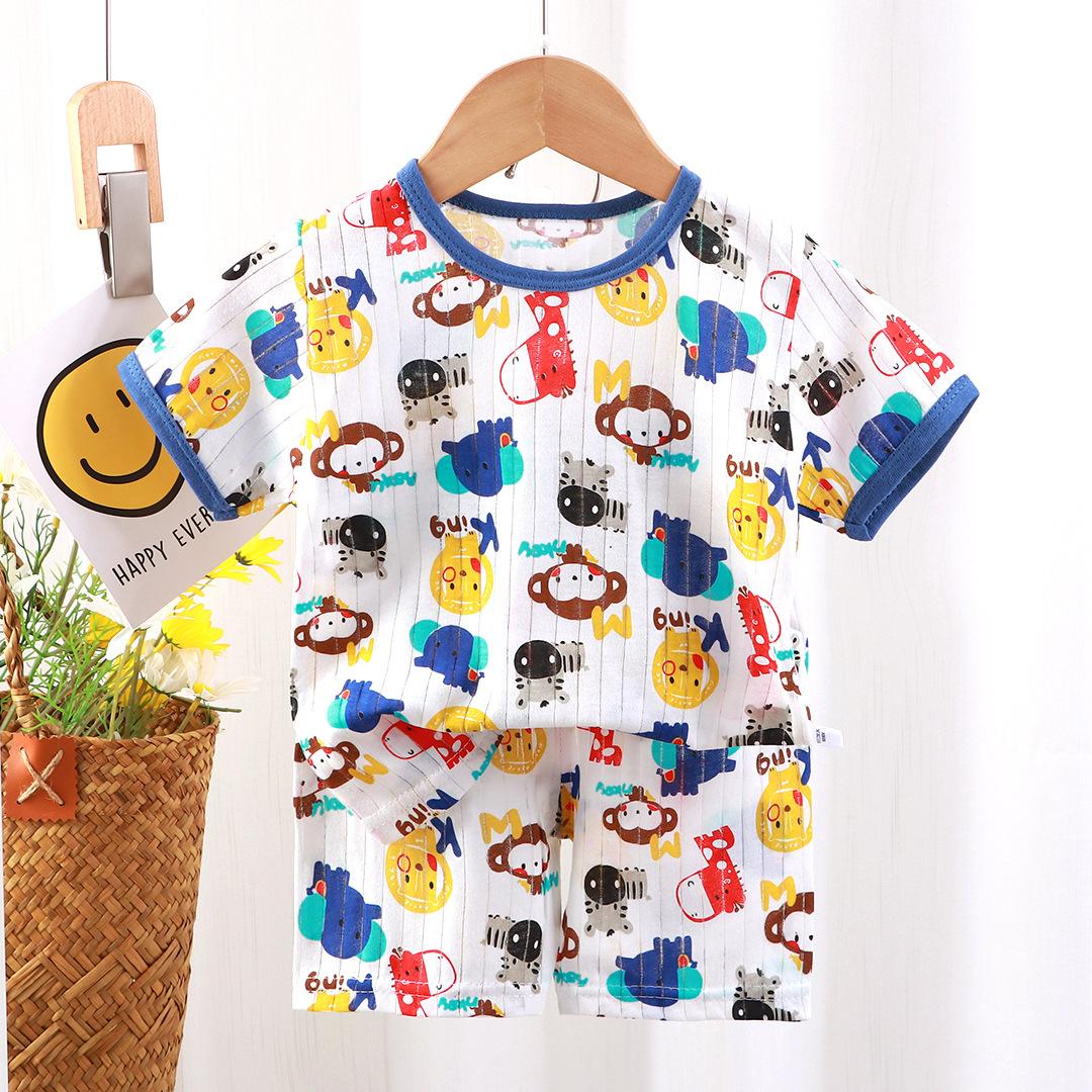 Детская домашняя одежда, комплект нижнего белья, повседневные тонкие летние хлопковые пижамы для мальчиков и девочек, два комплекта 100