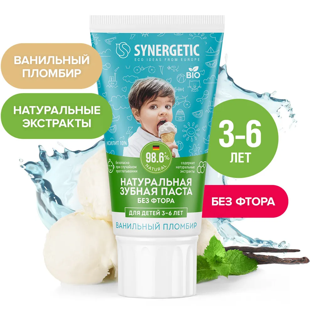 Детская зубная паста Synergetic Ванильный пломбир, 3+, 50мл, Ванильный пломбир