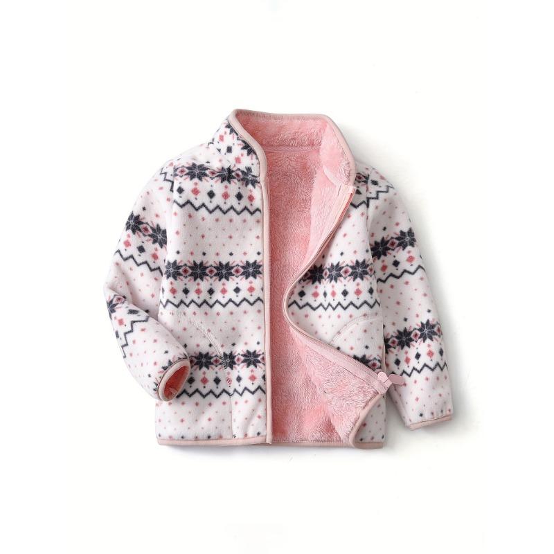 Детская куртка из полар-флиса для девочек, с принтом в горошек, толстая, теплая, со стоячим воротником, на молнии, верхняя одежда 140 белый