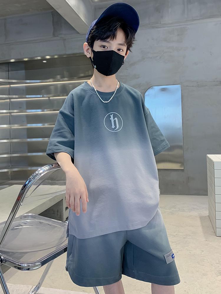 Детская летняя спортивная одежда 2023 г.: Комплект из топа с короткими рукавами и широких шорт для мальчиков в корейском стиле 140 серый
