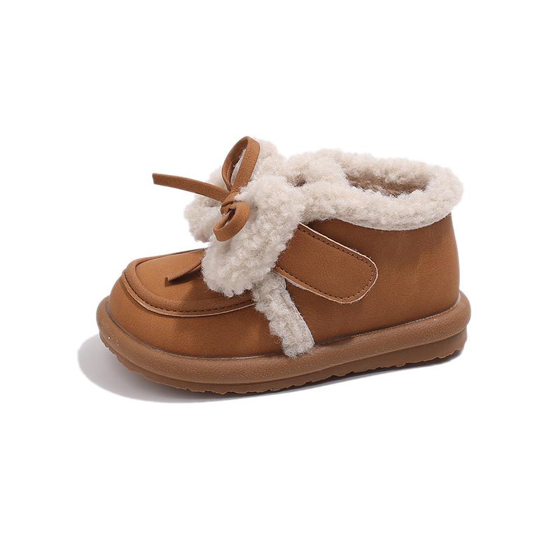 Детская обувь для улицы из хлопка, теплые домашние тапочки для девочек, мягкая подошва, детская модная плюшевая обувь на плоской подошве, нескользящая, размер 23-34 23 верблюд