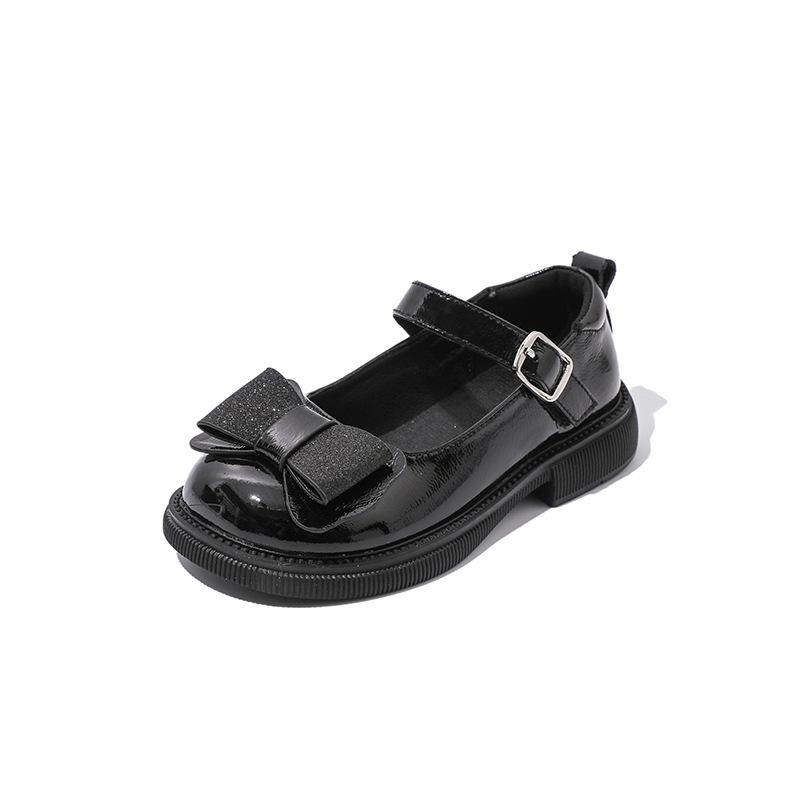 Детская обувь из натуральной кожи на весну и осень, детская обувь в британском стиле с бантом, спортивная обувь с мягкой подошвой для школьников 25 чёрный