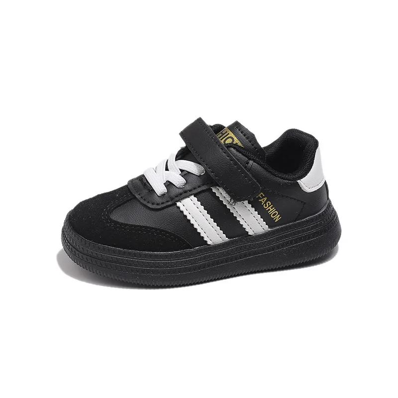 Детская обувь на плоской подошве для мальчиков и девочек, повседневная обувь с круглым носком и мягкой подошвой, 2024 г., новая детская спортивная обувь нейтрального стиля, дышащая, нескользящая 22 чёрный