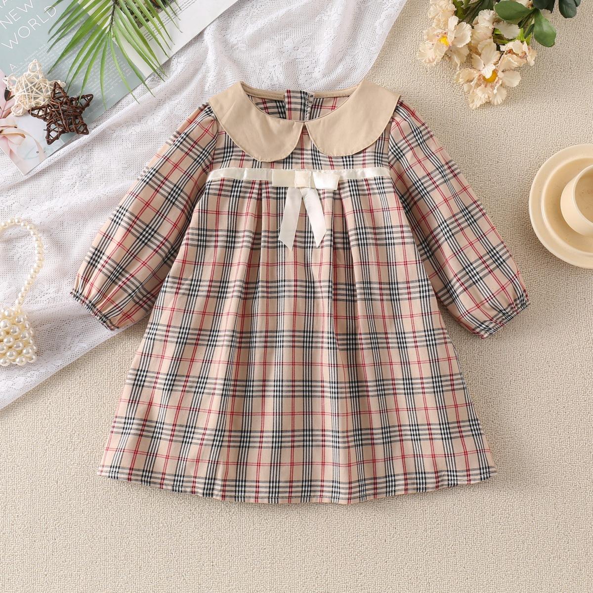 Детская одежда, весенне-осеннее платье для девочек, клетчатые платья с лацканами и длинными рукавами, студенческая форма с бантом, повседневное платье для детей 120