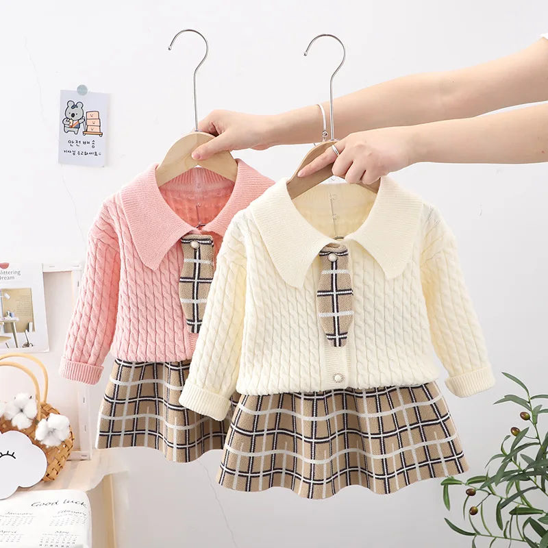Детская одежда, весенний комплект одежды для маленьких девочек, Топы + юбка, Детский кардиган, свитер для маленьких девочек, костюм на день р...