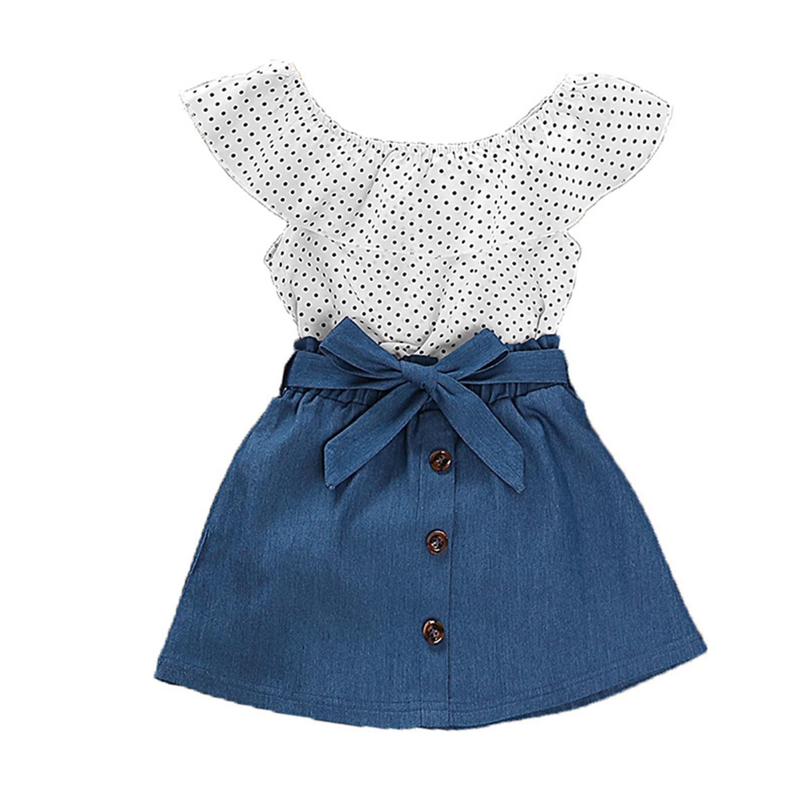 Детская одежда для маленьких девочек, укороченный топ с открытыми плечами и цветочными рюшами + джинсовые шорты с бантом, комплект с юбкой, летняя одежда для малышей 100 белый