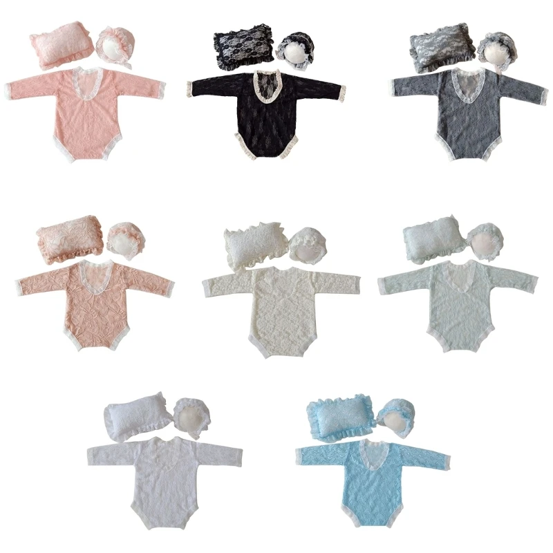 Детская одежда для фотосъемки кружевной комбинезон костюм для новорожденных реквизит для фотосъемки цельный комбинезон фотошапка приятный для кожи наряд для фотосъемки