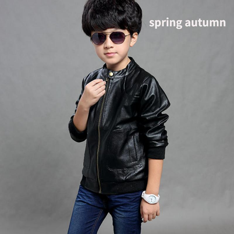 Детская одежда, детская кожаная куртка, весенне-осенняя мотоциклетная куртка с воротником-стойкой для мальчиков 150 чёрный