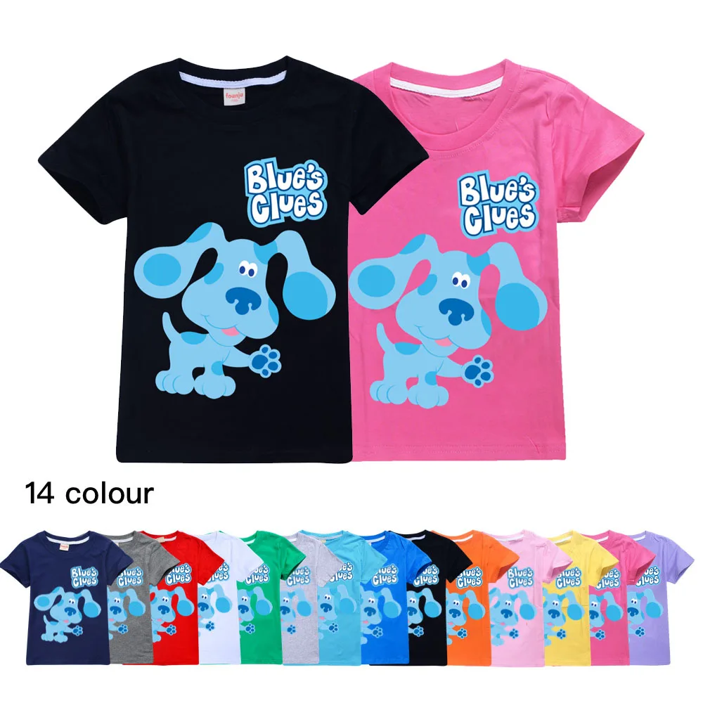 Детская одежда, летняя футболка для мальчиков с мультяшными синими подсказками, Детская уличная одежда с 3D принтом для девочек, детская заб...