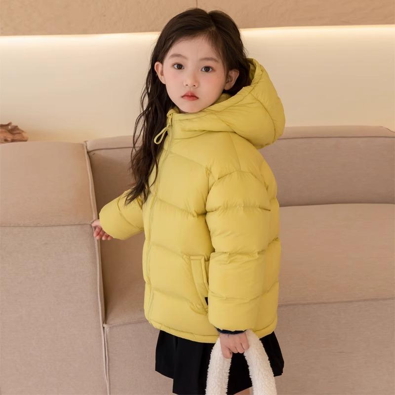 Детская однотонная куртка-пуховик для мальчиков и девочек от 2 до 10 лет, зимнее теплое пальто, детское пальто на утином пуху с капюшоном 150cm жёлтый