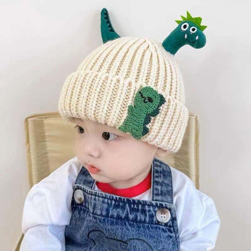 Детская осенне-зимняя шапка милая супер милая шапка из шерсти в форме динозавра зимняя для мальчиков и девочек теплое покрытие вязание