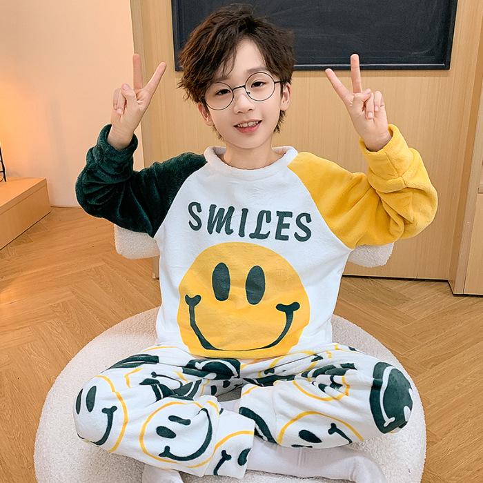 Детская пижама из флиса с рисунком кораллового цвета - теплая, плотная фланелевая с круглым вырезом для мальчиков, коллекция осень/зима Size 8 (Height 95-105 cm)
