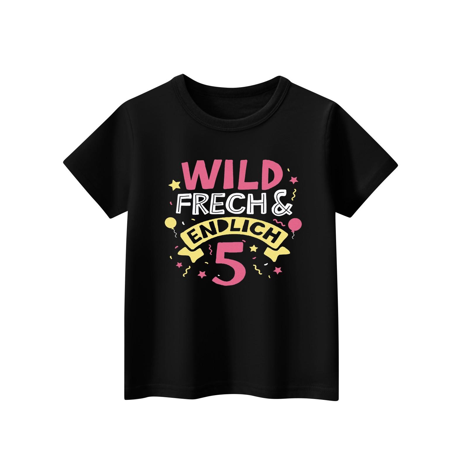 Детская повседневная футболка с короткими рукавами и круглым вырезом с принтом, модная 130 чёрный