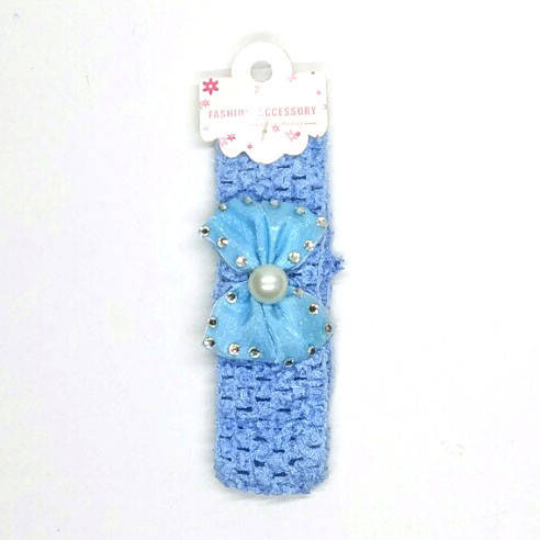 Детская повязка на голову c бантиком и бусинкой Голубой