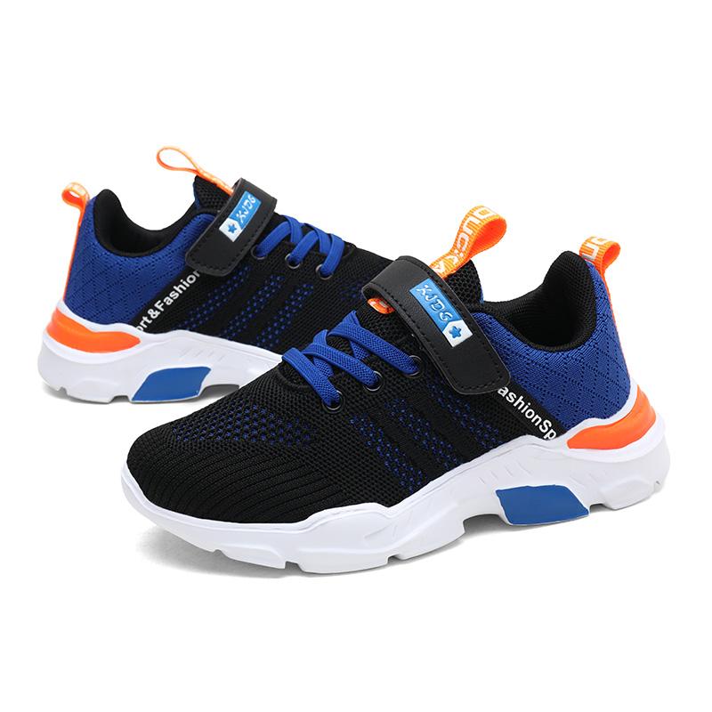 Детская противоскользящая износостойкая модная уличная летающая тканая спортивная обувь с низким вырезом для мальчиков 35 синий/чёрный