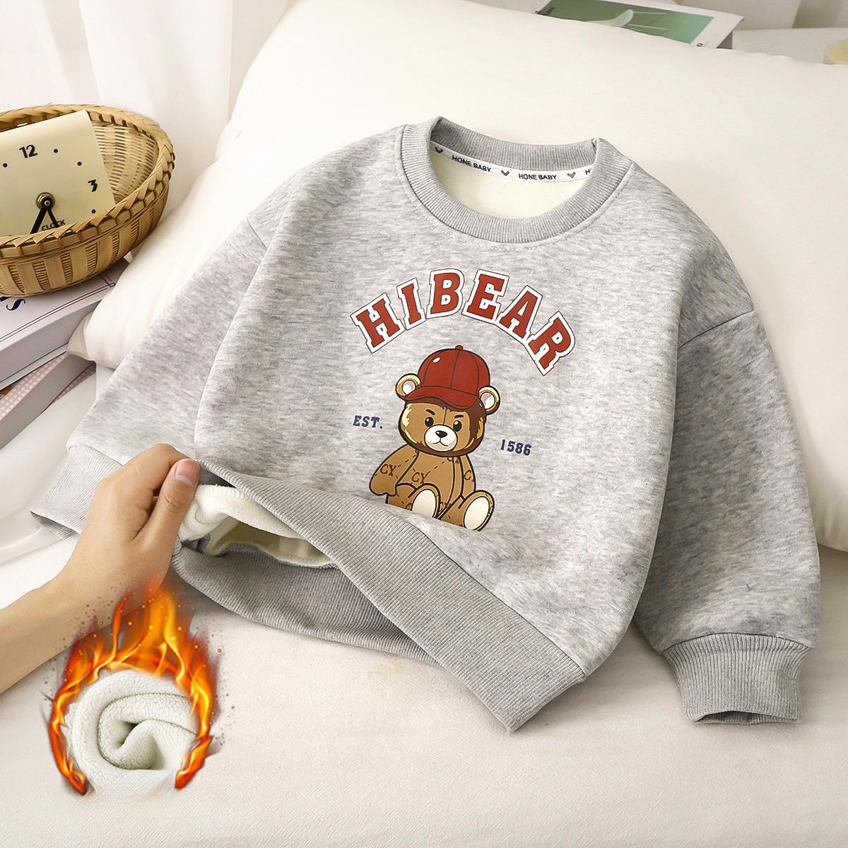 Детская рубашка для мальчиков и девочек с принтом медведя, толстовки на осень и зиму, теплые топы с низом, повседневная детская утепленная одежда, одежда для малышей 80 серый