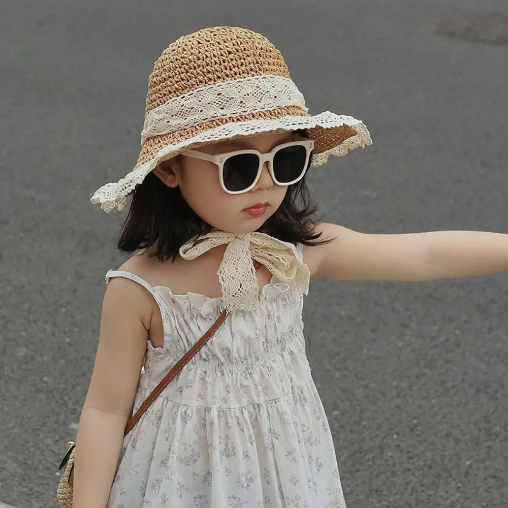 Детская соломенная шляпа на шнуровке от солнца, затеняющая шляпа, анти-УФ-солнце, мультяшная шляпа от солнца, складная детская шляпа с козырьком в корейском стиле, детская шляпа