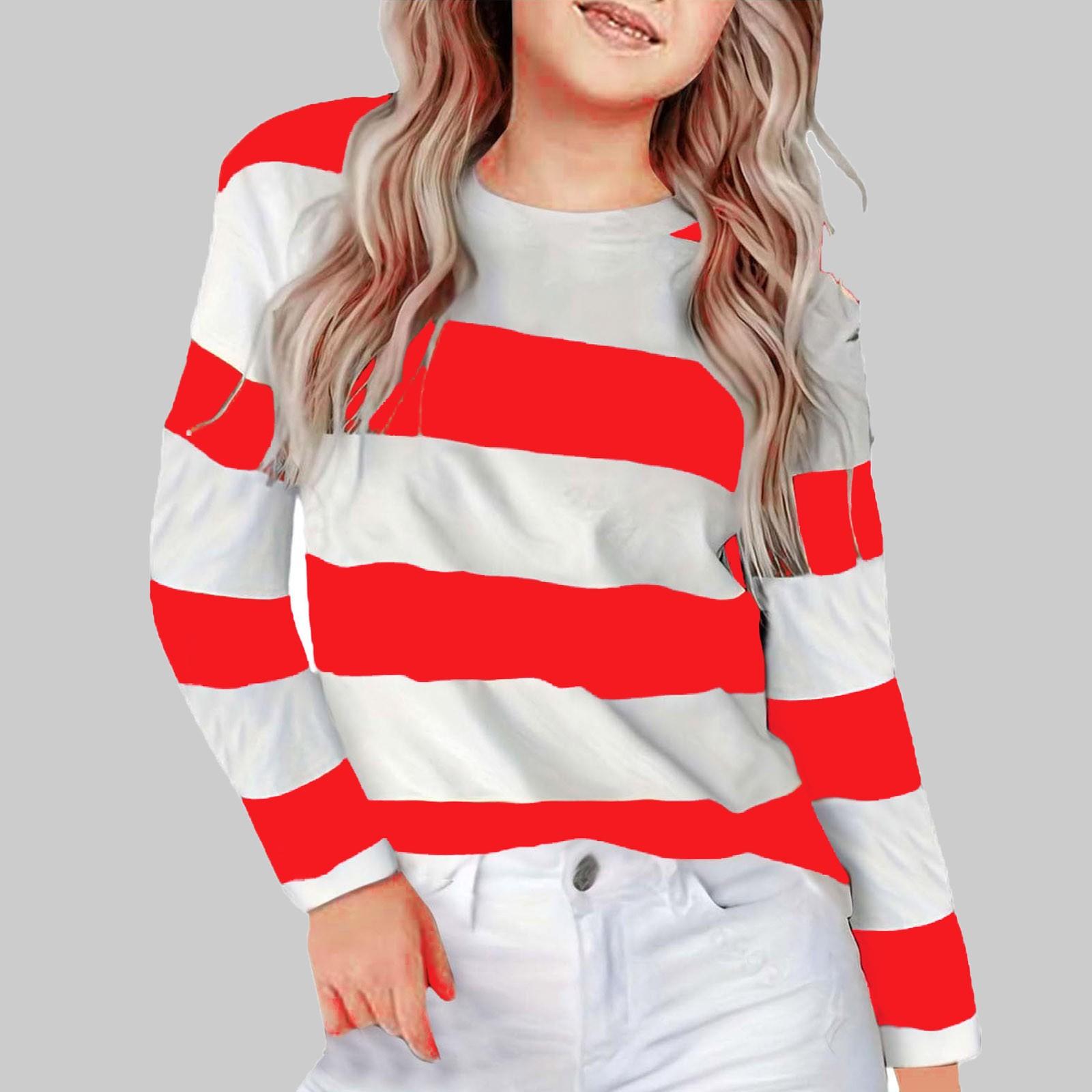 Детская спортивная одежда для девочек, однотонная, в полоску, с длинными рукавами, свободная, повседневная, женская, тонкая, спортивная, верхняя, базовая рубашка 160 красный
