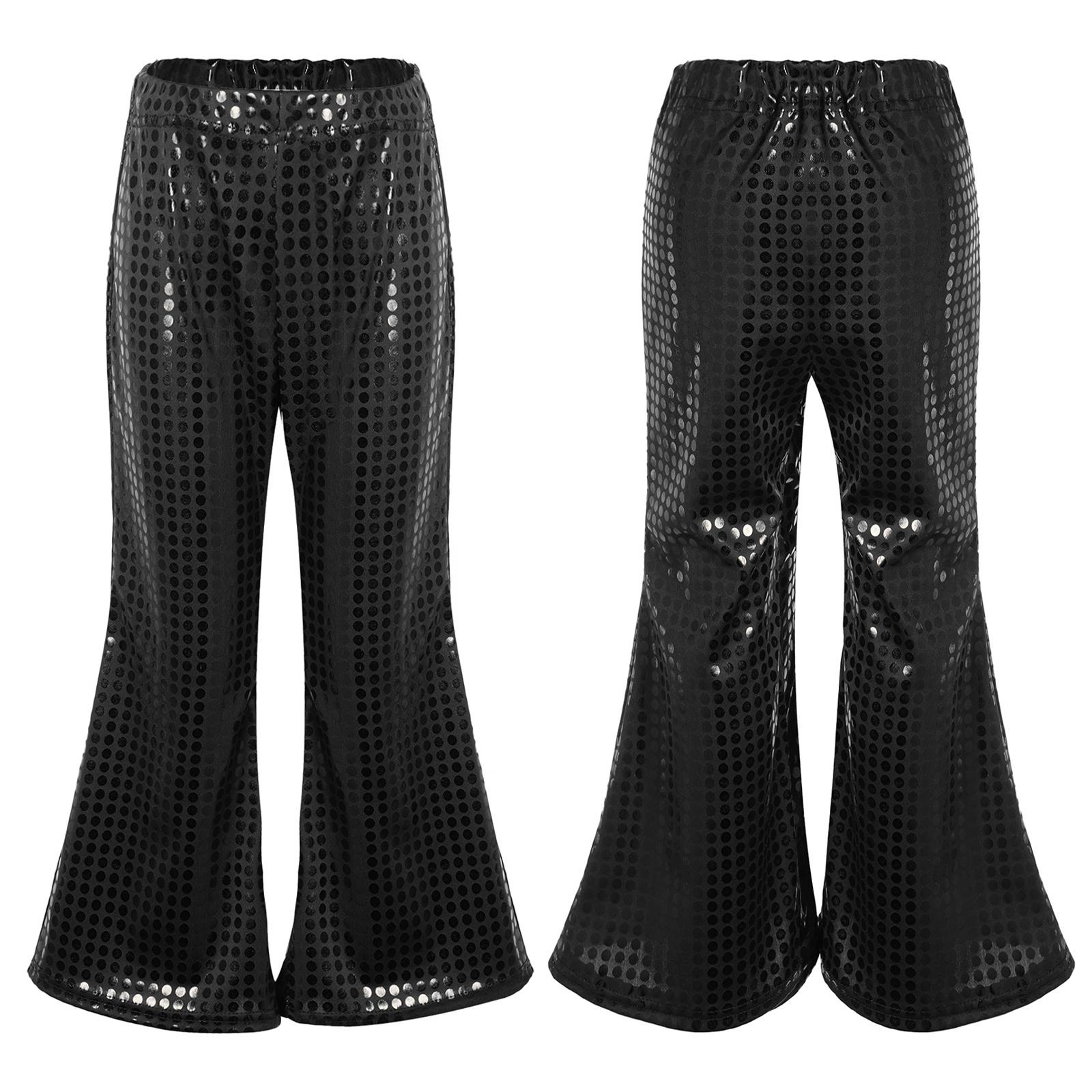 Детская стильная одежда для мальчиков и девочек, расклешенные брюки с эластичным поясом, блестящие брюки с блестками для выступлений на сцене 2-3 Years чёрный