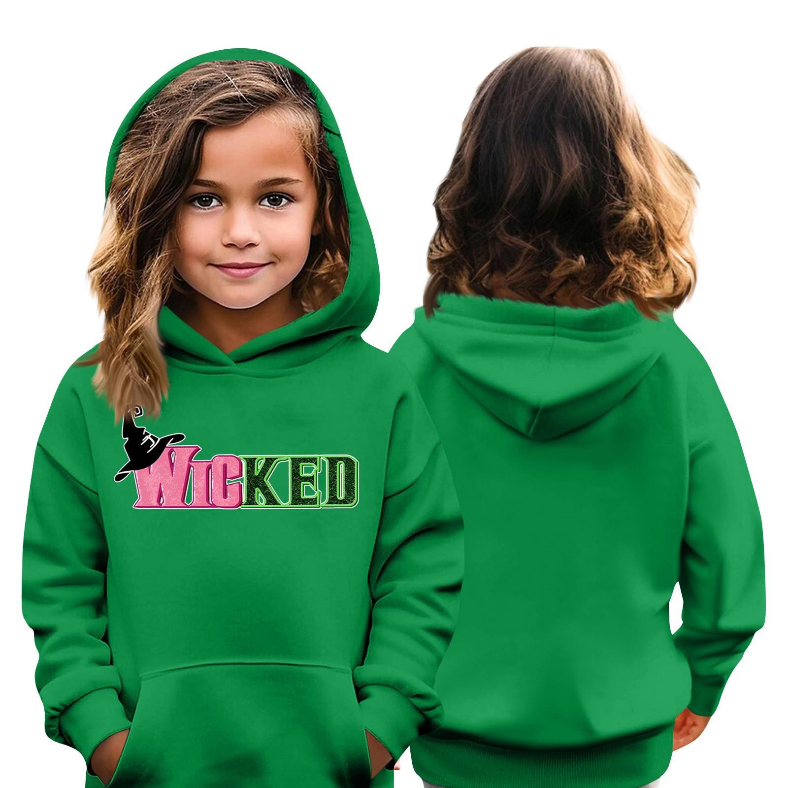 Детская толстовка с капюшоном для мальчиков и девочек, модная принтованная толстовка с длинными рукавами и карманом 160 зелёный