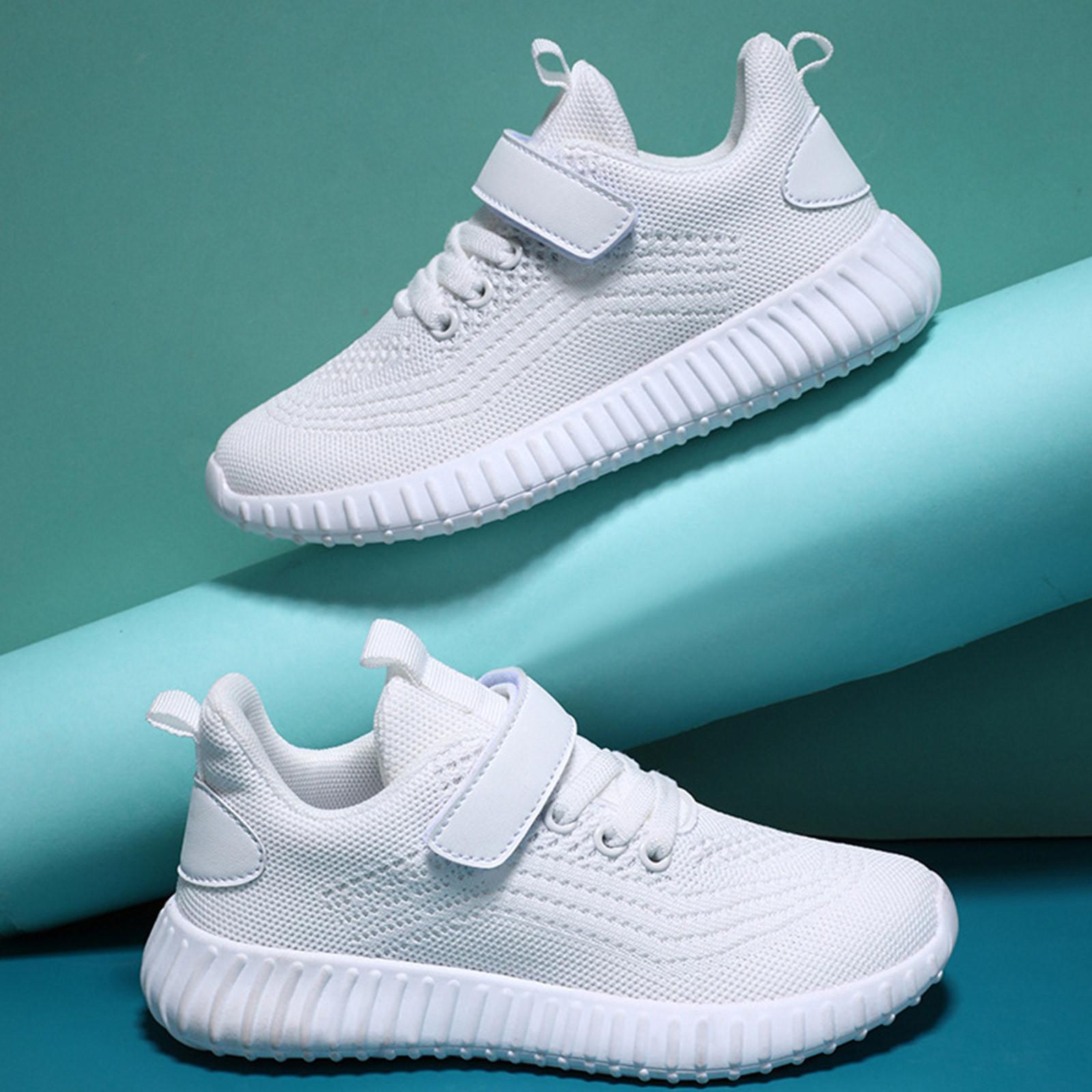 Детская уличная однотонная повседневная спортивная обувь с внутренней сеткой, высокоэластичная обувь 39 белый