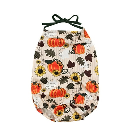 nsendm Fall Baby Girl Outfit Toddler Kids Girls Sleeveless Prints Romper Jumpsuit 10 12 Rompers Beige 3-6 Months