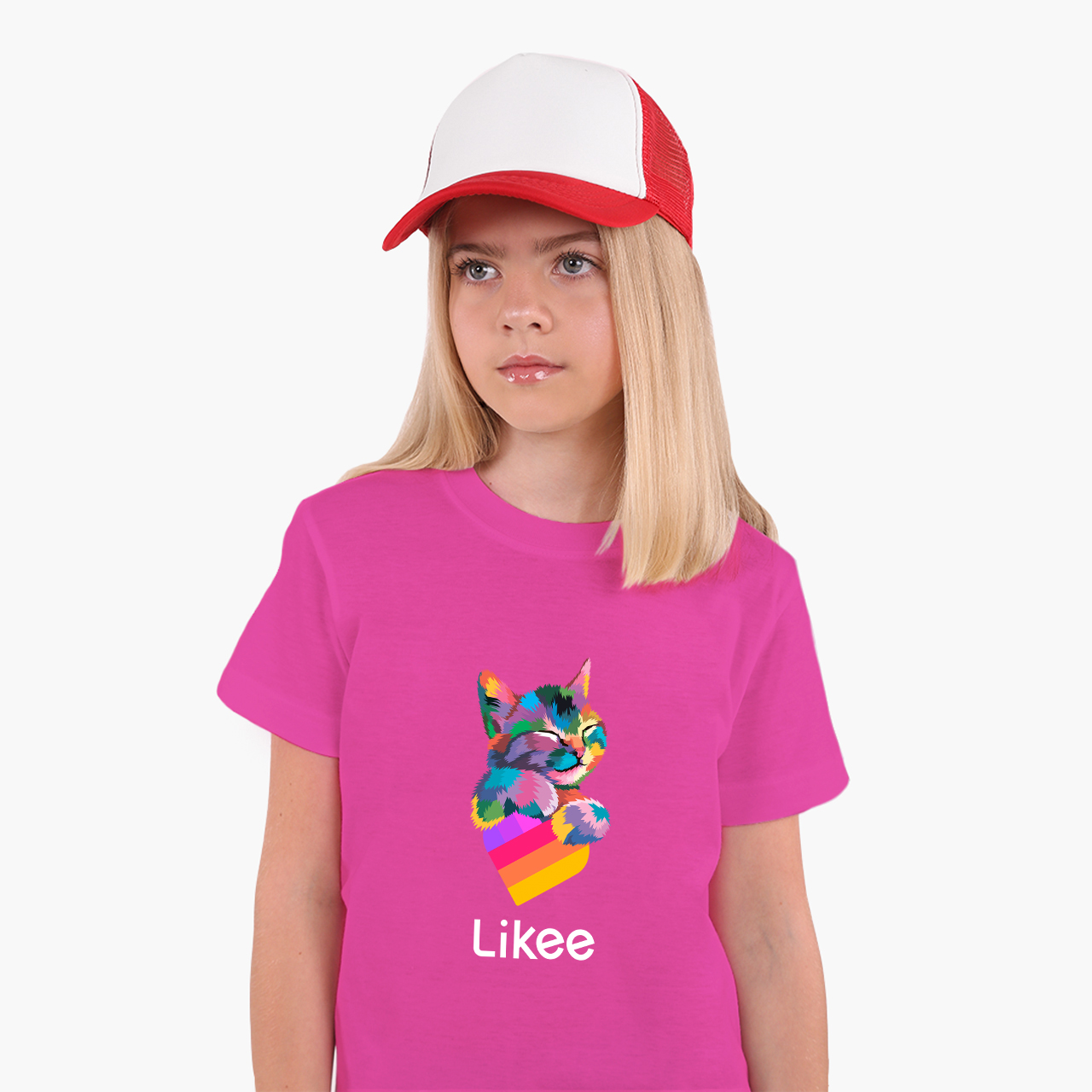 Детская футболка для девочек Лайк (Likee) (25186-1040-68) 122-128 см Хлопок Темно-розовый