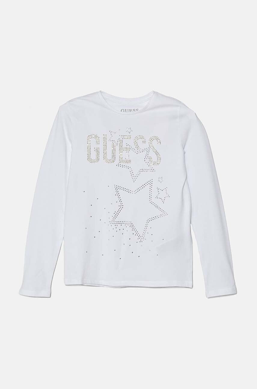 Детская рубашка Guess с длинными рукавами из трикотажного полотна с аппликацией. Модель изготовлена из чрезвычайно комфортной ткани с высоким процентом хлопка.