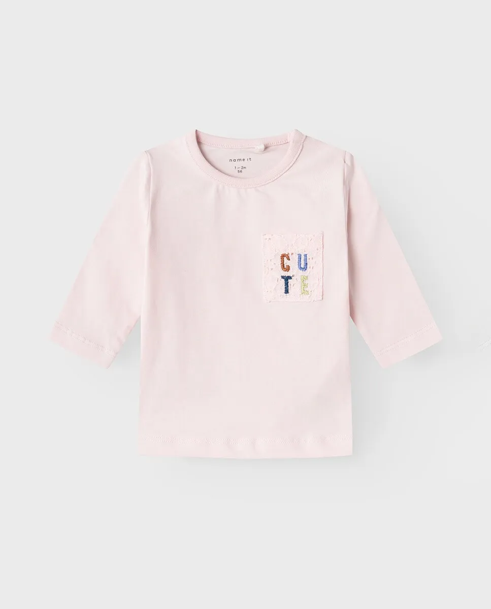 Футболка для девочки с длинными рукавами и застежкой на клипсу в верхней части.