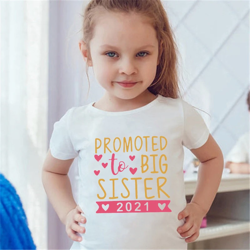 Детская футболка с коротким рукавом, летняя белая футболка с буквенным принтом для старшей сестры, 2021