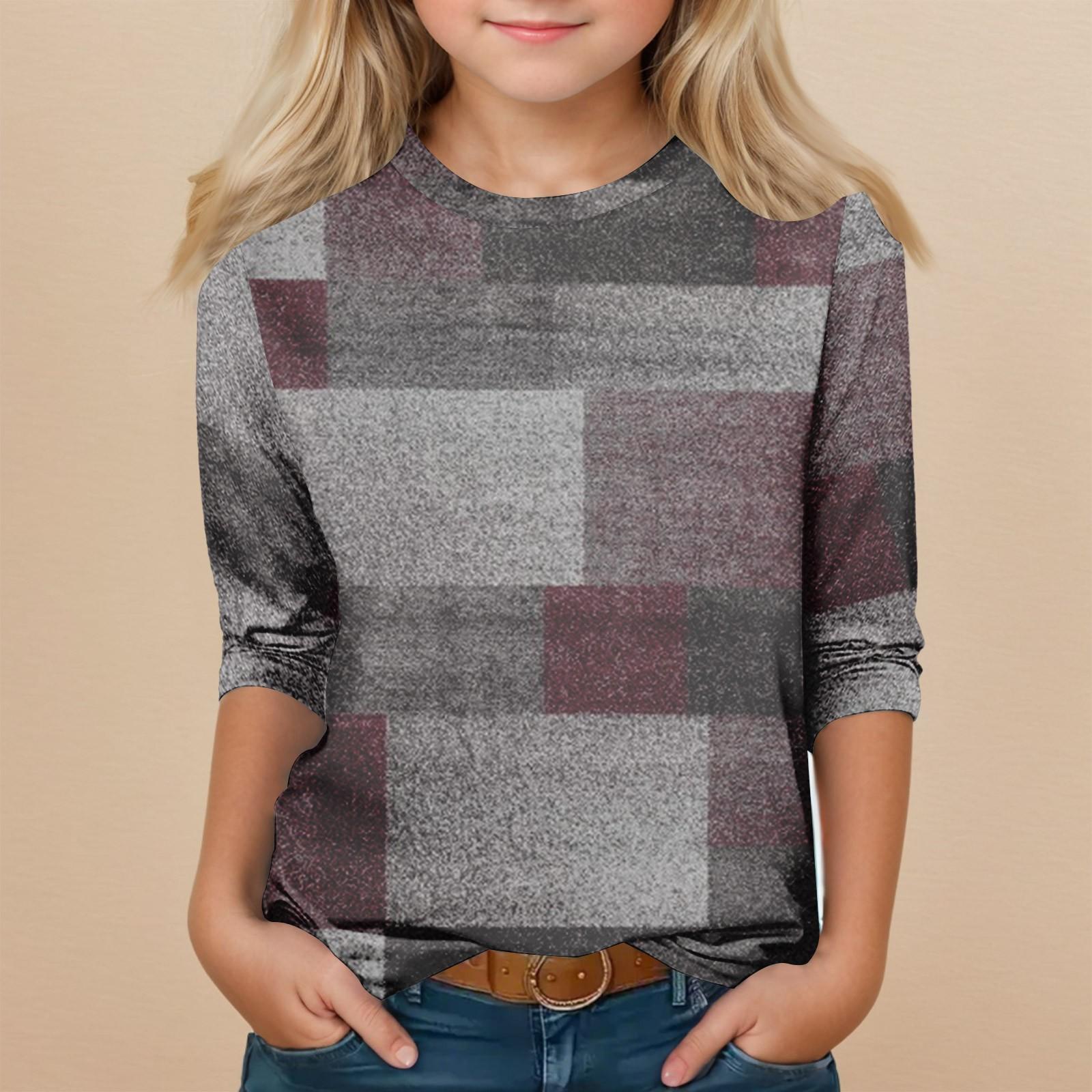 Детская футболка с рукавом 3/4, повседневная футболка с принтом, круглый вырез, блузка-пуловер 160 винный