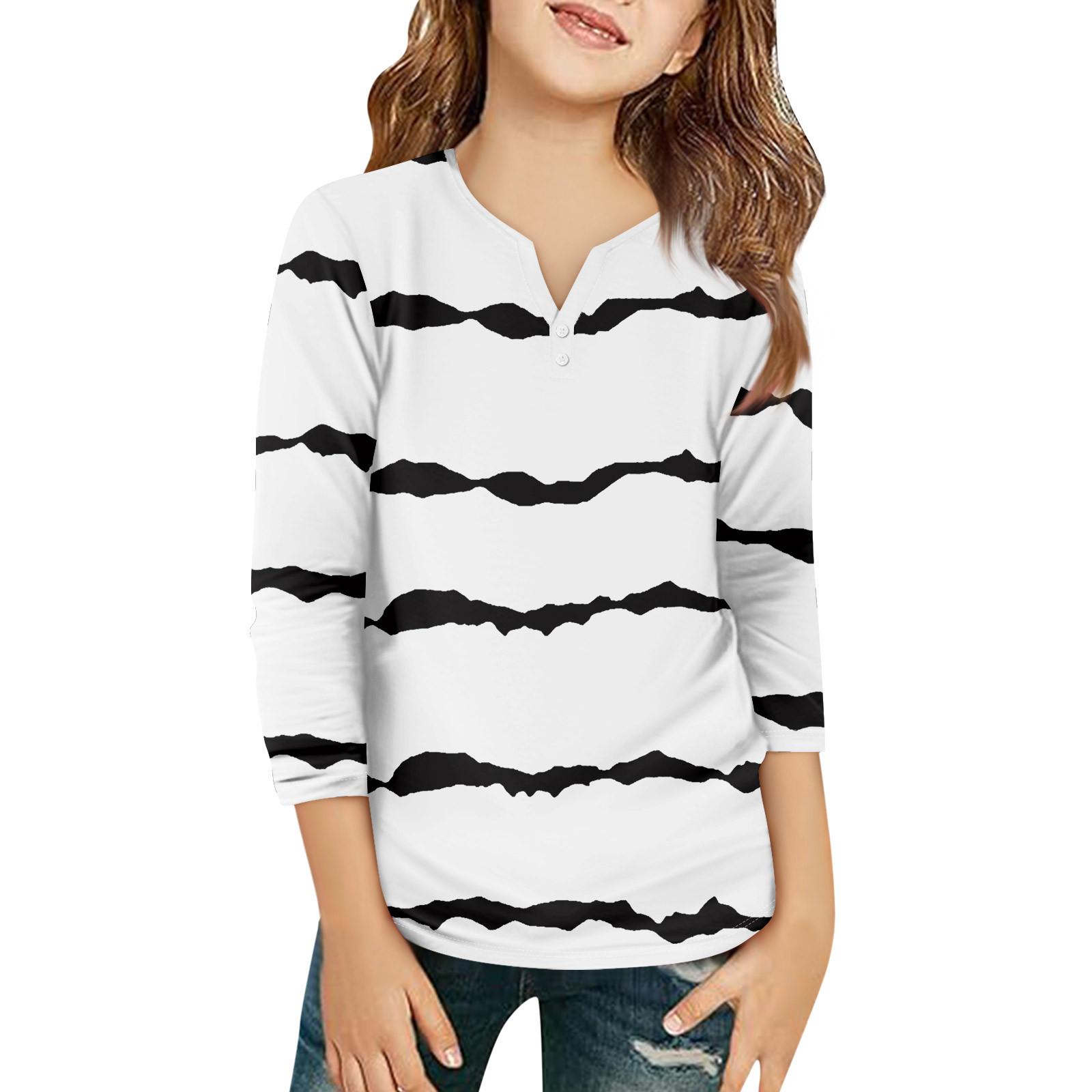 Детская футболка с рукавом 3/4, повседневная футболка с принтом, круглый вырез, блузка-пуловер 160 белый