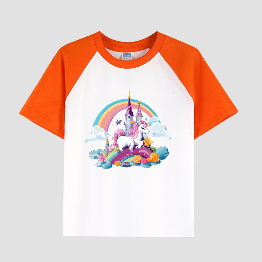 Детская футболка с цветочным принтом, коротким рукавом, круглым вырезом, хлопковая ткань, повседневный стильный топ для девочек на лето 150cm