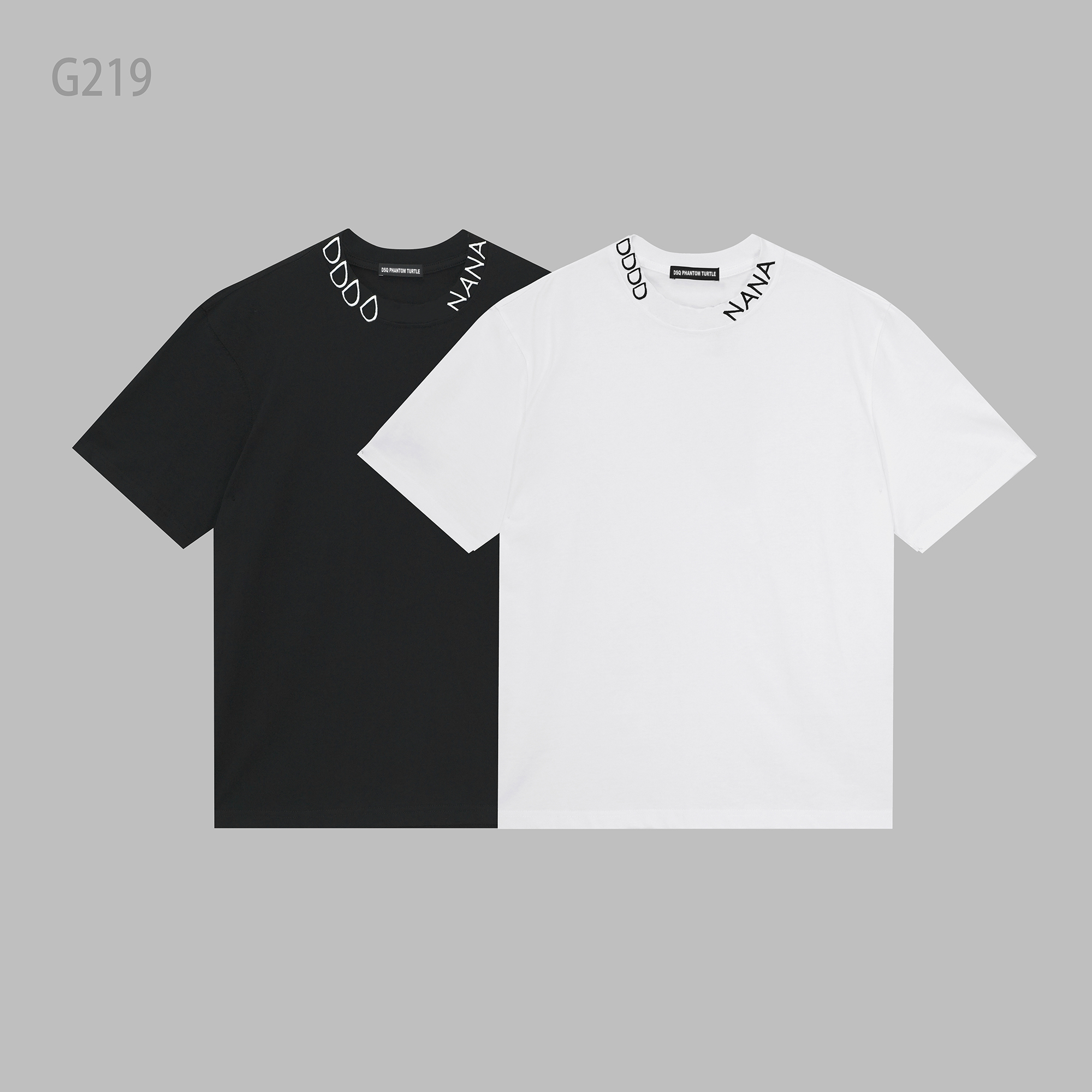 Mens T-Shirts Men's Black White Round-neck T-shirt With Brand Logo Print 6857