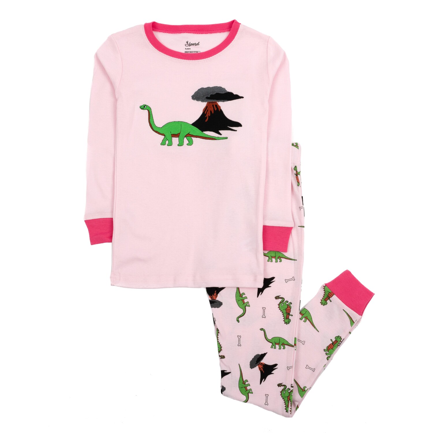Детская хлопковая пижама из двух предметов с динозавром, розовая Leveret