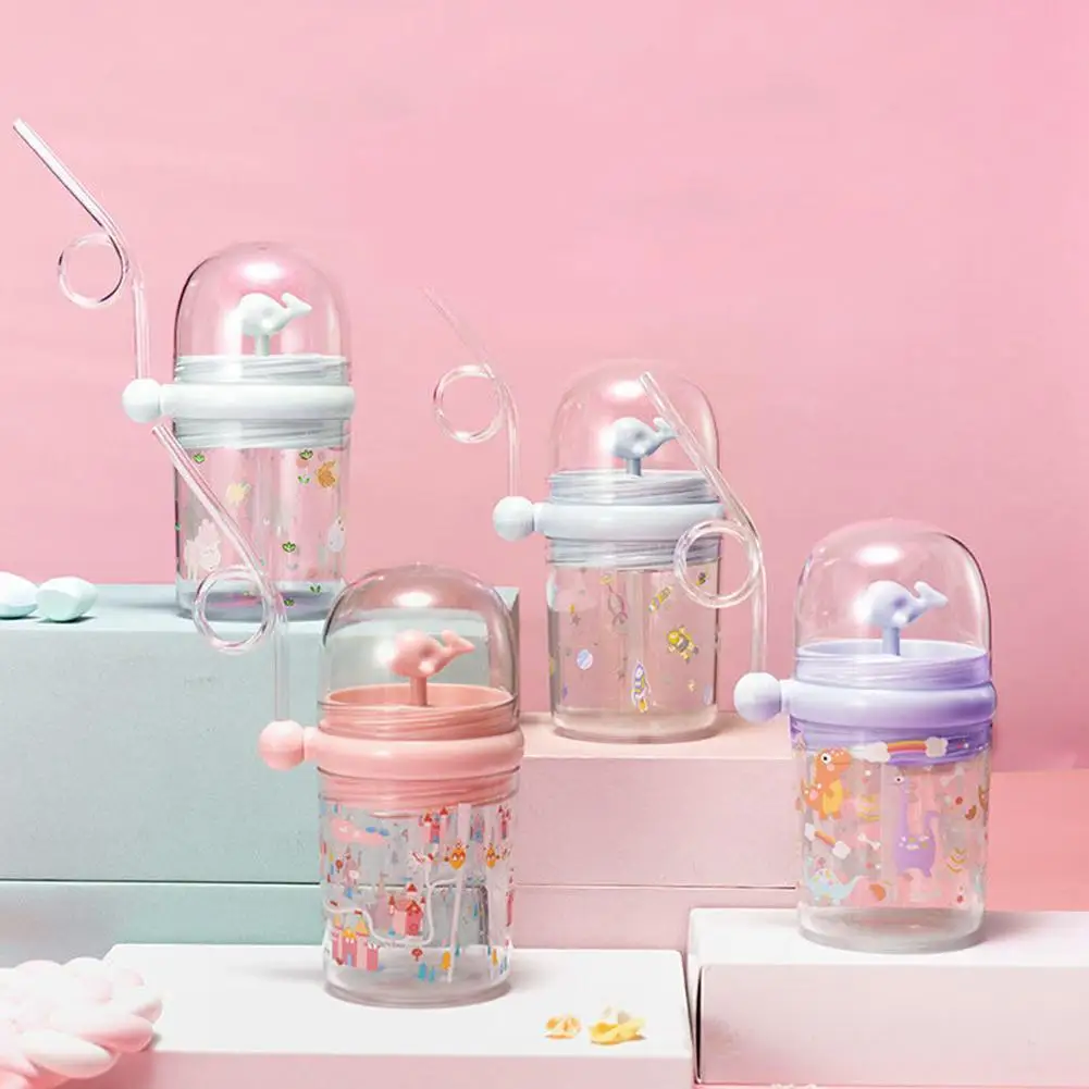 Детская чашка с соломинкой, Мультяшные герметичные портативные бутылочки для кормления, детские чашки с Китом и водой 260 мл, посуда для напи...