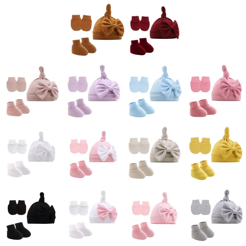 Детская шапка вязаные варежки ножные браслеты для новорожденных теплые дышащие головные уборы