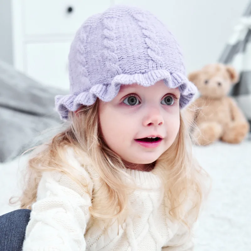 Детская шапка, зимняя шапка с капюшоном для девочек, осенне-зимняя теплая шерстяная шапка с защитой ушей, вязаная шапка для девочек с кружев...