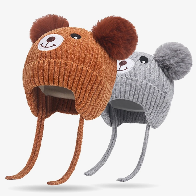 Детская шапка с помпоном, зимняя детская шапка, вязаная Милая шапка для девочек и мальчиков, Повседневная однотонная детская шапка для девочек