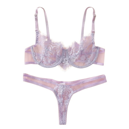 Follure Ladies casual underwear bra Erotic Underwear Lace Temptation Three Point Lingerie With Steel Ring Purple L