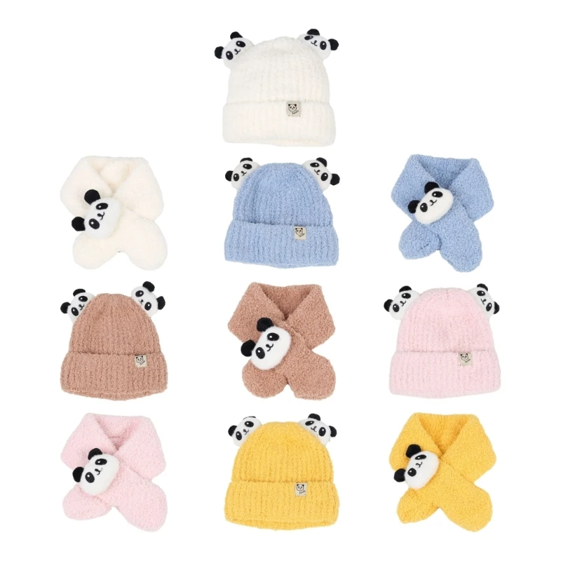 Детская шапка, шарф, зимняя вязаная теплая шапка для мальчиков и девочек, капюшон с принтом панды, ветрозащитный шейный платок