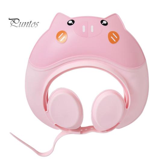 Детская шапочка для душа, безопасная силиконовая защитная шапочка для ванны, мягкая шапочка с козырьком в форме мультфильма, регулируемый ремешок, водонепроницаемая шапочка для мытья шампунем розовый