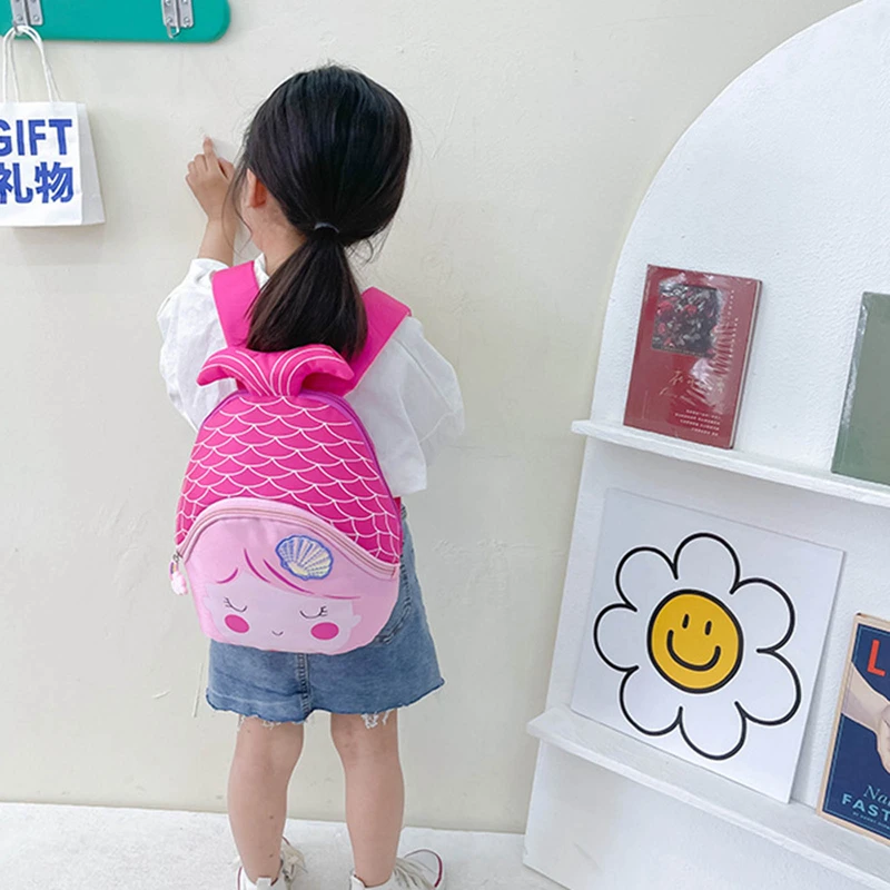 Детская школьная сумка на молнии с отделениями, милый мультяшный рюкзак с рыбками для детского сада, кошелек для девочек, сумка для детского сада